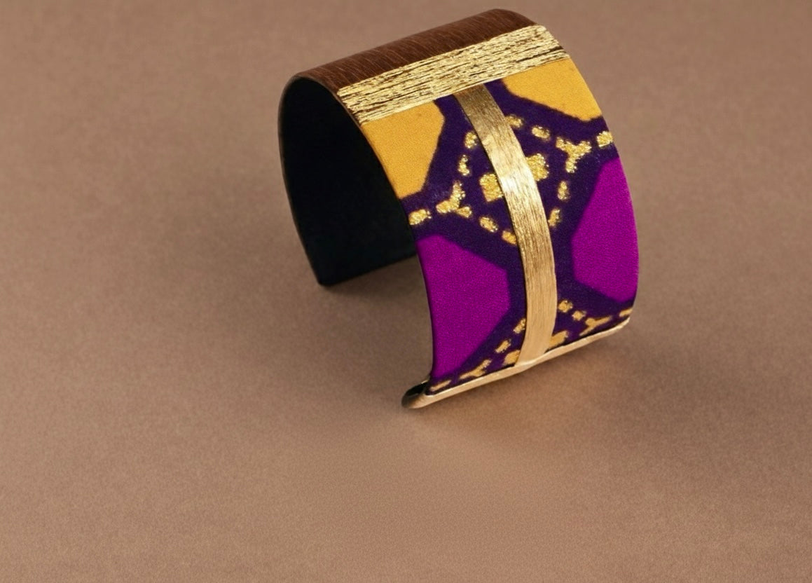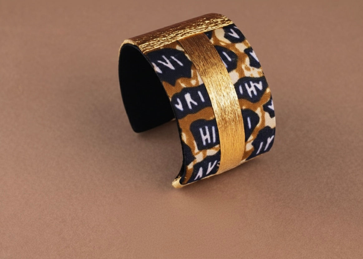Tissu wax d’exception! Relevée d’une dorure graphique. Taille réglable pour tous les poignets